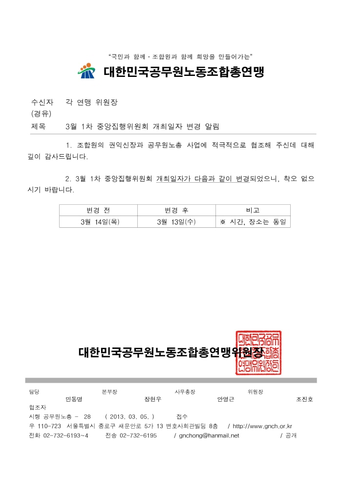[°ø¹«¿ø³ëÃÑ] 3¿ù 1Â÷ Áß¾ÓÁýÇàÀ§¿øÈ¸ °³ÃÖ ¾Ë¸²