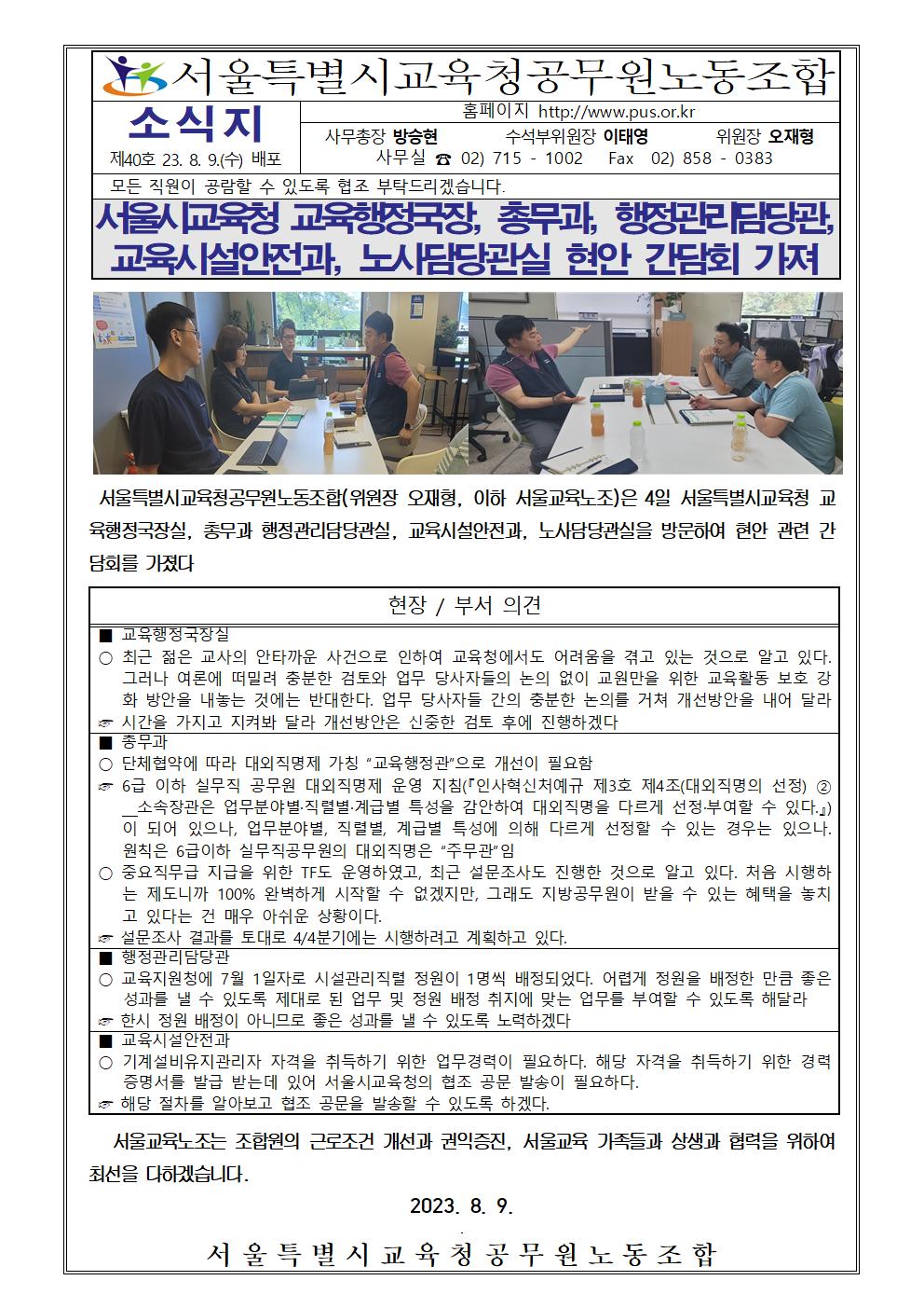 [¼Ò½ÄÁö]º»Ã» ±³À°ÇàÁ¤±¹Àå, Ãѹ«°ú, ÇàÁ¤°ü¸®´ã´ç°ü, ±³À°½Ã¼³¾ÈÀü°ú,³ë»ç´ã´ç°ü½Ç Çö¾È °£´ã