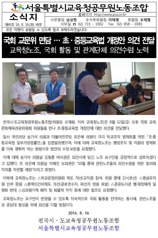 [ÅëÇÕ³ëÁ¶ ¼Ò½ÄÁö] ½ÃÀÇȸ ¹Ú»óÇõ ±³À°À§¿øÀå°ú »ó°ß·Ê ¹× °£´ãȸ °¡Á®